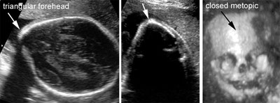 Reference(s):Chaoui R, Levaillant JM, Benoit B, Faro C, Wegrzyn P, Nicolaides KH. Three-dimensional sonographic description of abnormal metopic suture in second- and third-trimester fetuses. Ultrasound Obstet Gynecol 2005;26(7):761–4. PubMed PMID: 16308900.