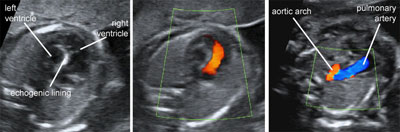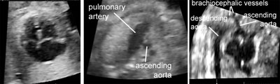 Reference(s):Chaoui R, McEwing R. Three cross-sectional planes for fetal color Doppler echocardiography. Ultrasound Obstet Gynecol 2003;21(1):81–93. Review. PubMed PMID: 12528169. Lee W, Allan L, Carvalho JS, Chaoui R, Copel J, Devore G, Hecher K, Munoz H, Nelson T, Paladini D, Yagel S; ISUOG Fetal Echocardiography Task Force. ISUOG consensus statement: what constitutes a fetal echocardiogram? Ultrasound Obstet Gynecol 2008;32(2):239–42. PubMed PMID: 18663769. Chaoui R. Fetal echocardiography: state of the art of the state of the heart. Ultrasound Obstet Gynecol 2001;17(4):277–84. Review. PubMed PMID: 11339181.