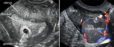 Legend:The gestational sac in 2D ultrasound at 4–6 weeks' gestation
