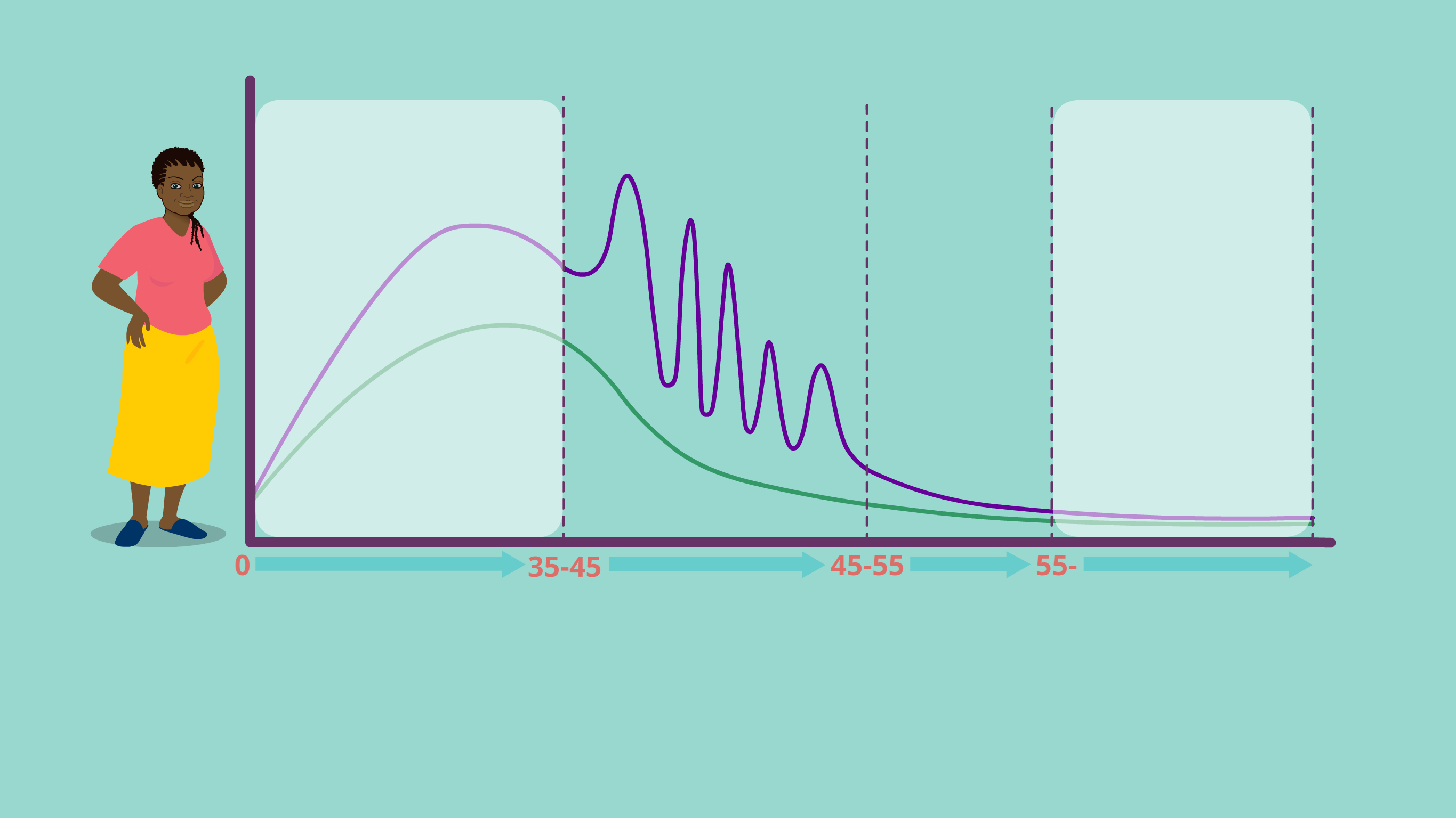 The years leading up to menopause are called the perimenopause or menopausal transition. This usually happens between the ages of 45 and 55. The exact timing of menopause can be affected by lots of different factors. The perimenopause typically lasts for years.